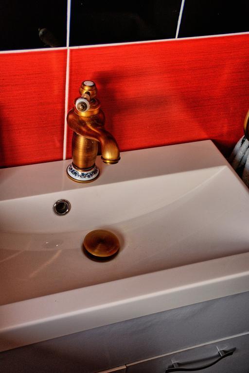 ein modernes Duschbad, eine Waschmachine, sowie eine Minibar.